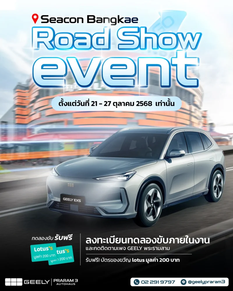 กลับมาอีกครั้งกับ GEELY EX5 ที่ซีคอนบางแค พร้อมกิจกรรมทดลองขับภายในงาน🚗💨