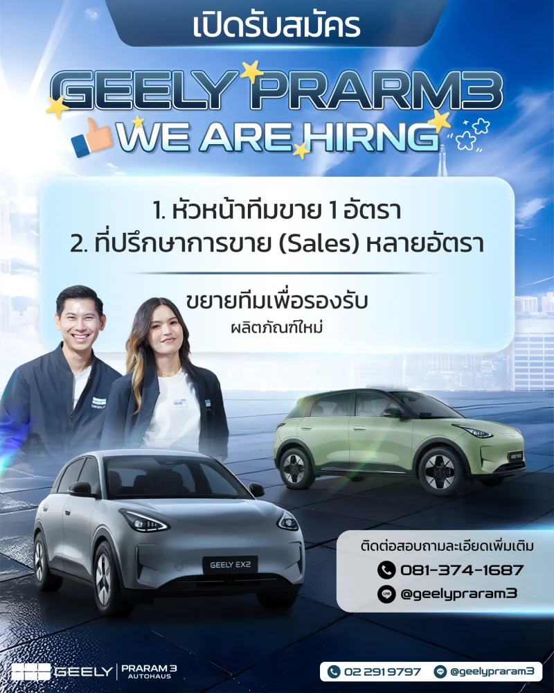 🎉ร่วมเป็นส่วนหนึ่งของ Geely พระราม3 ประกาศรับสมัคร