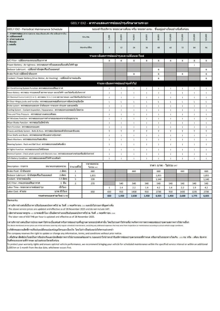 ตารางการบำรุงรักษา EX2